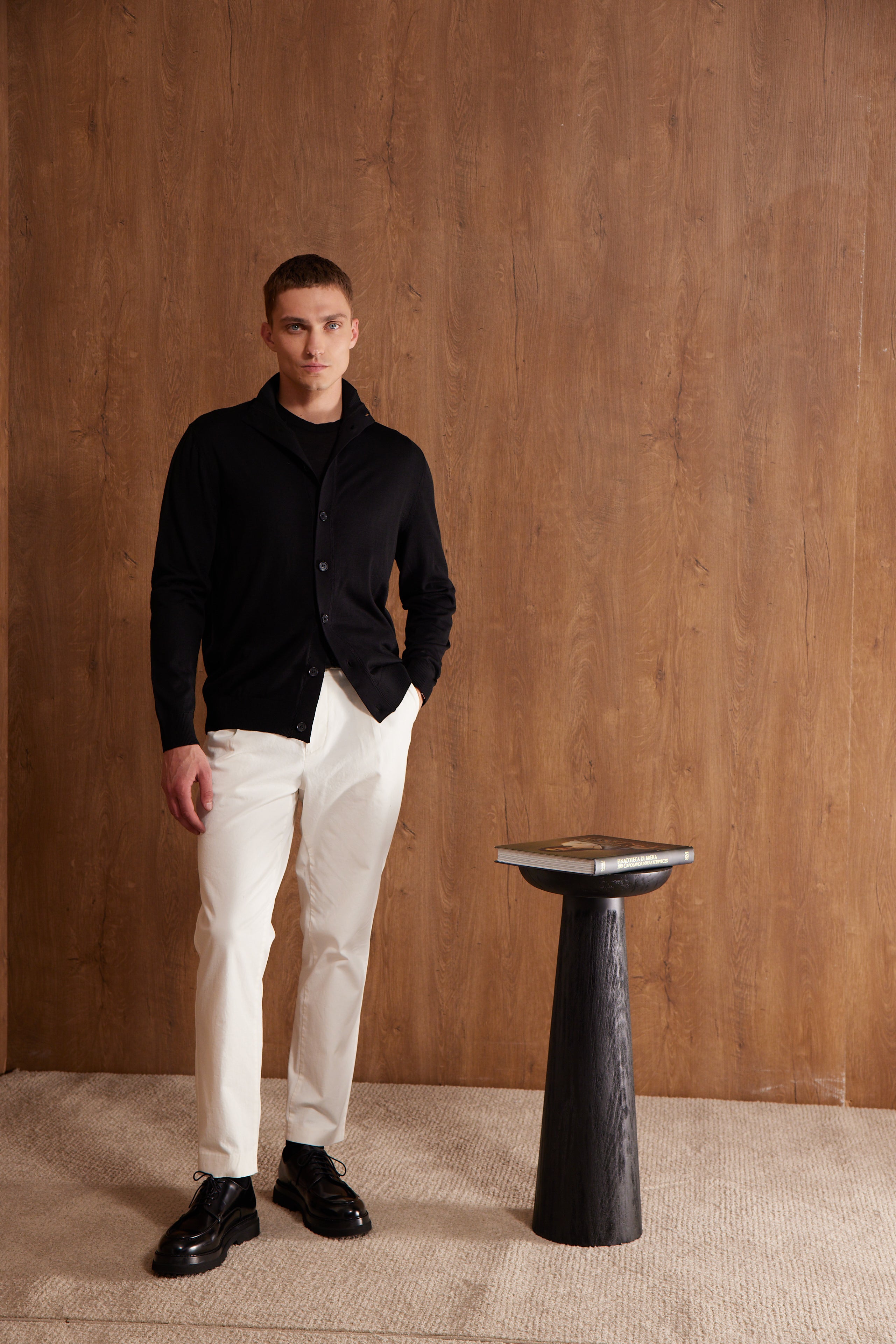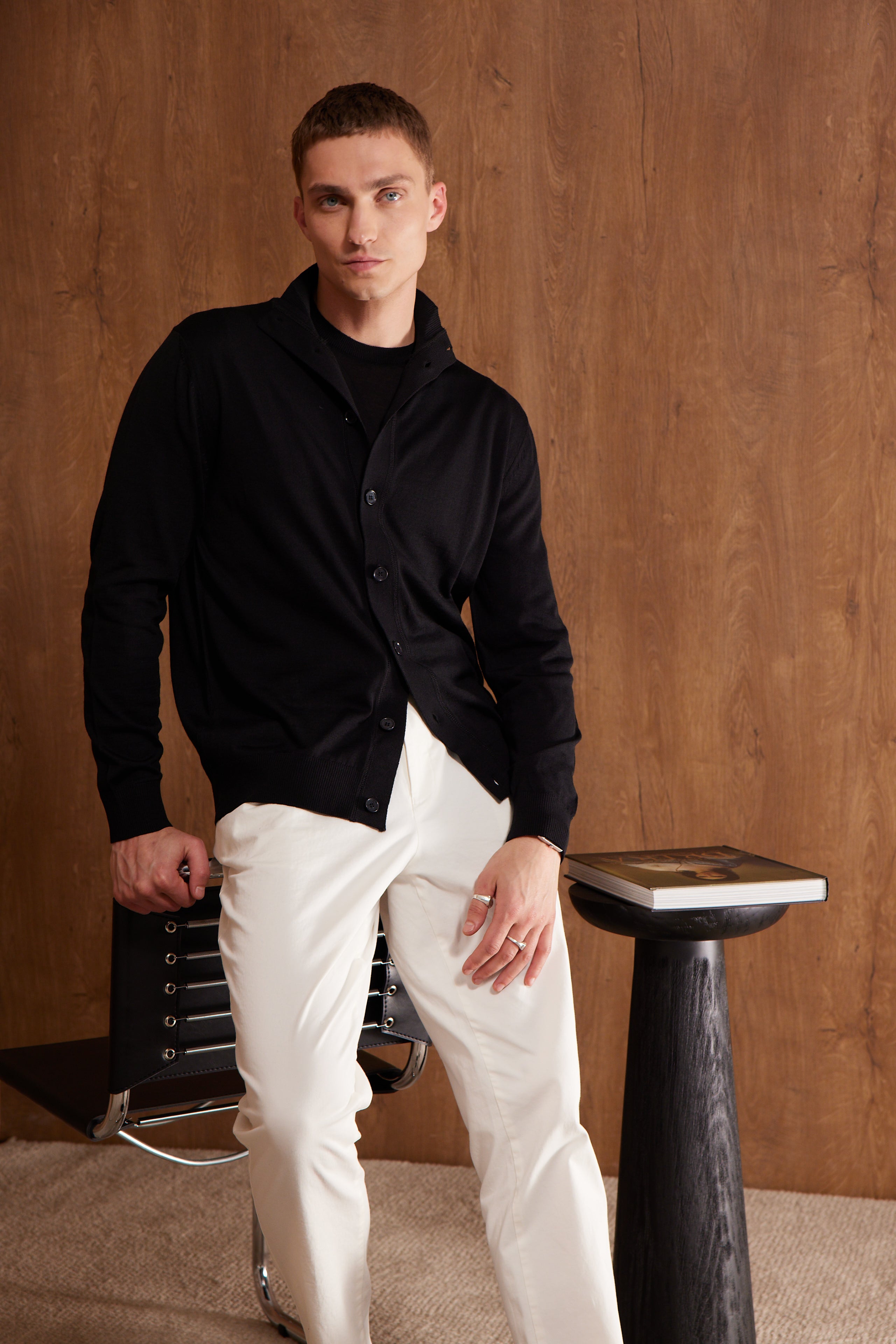 İtalyan ipliğiyle  üretilen bu düğmeli hırka, yumuşak dokusu ve temiz hatlarıyla günlük stilinize lüks bir dokunuş katar.