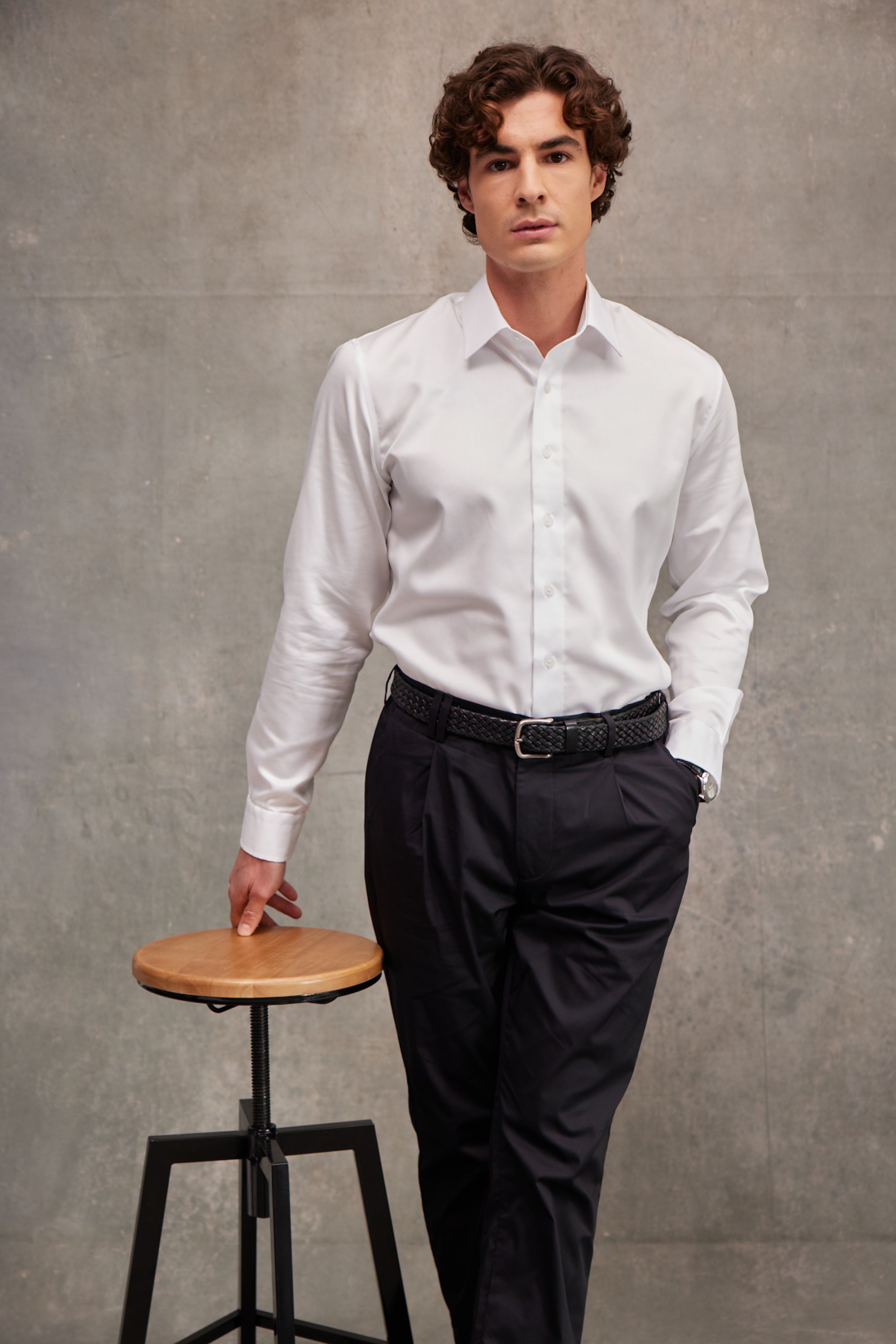 Non-Iron teknolojisiyle zahmetsiz şıklık. Yumuşak %100 pamuk dokusu, kırışıklıklara karşı dayanıklı yapısıyla gün boyu kusursuz bir görünüm sunar.