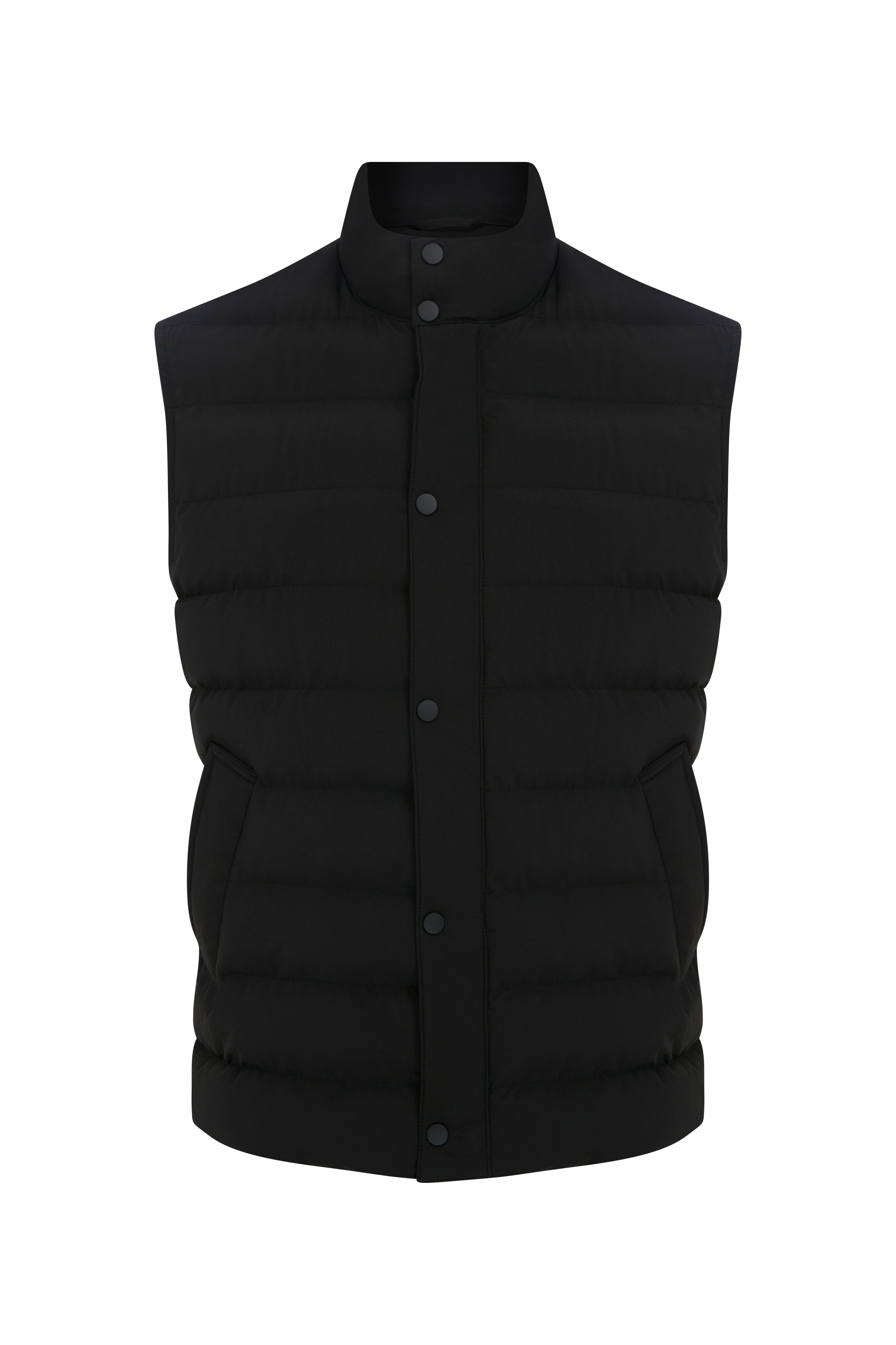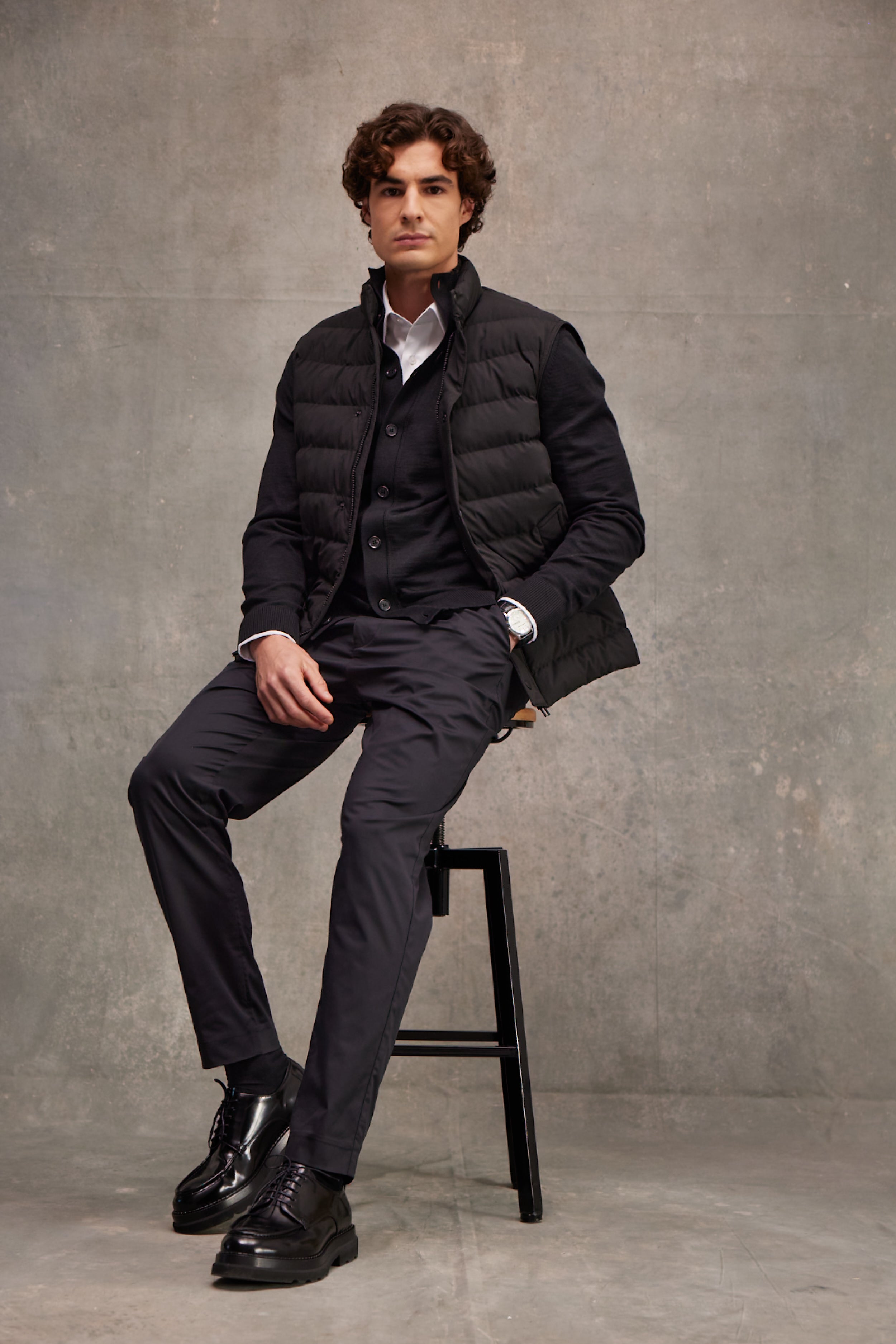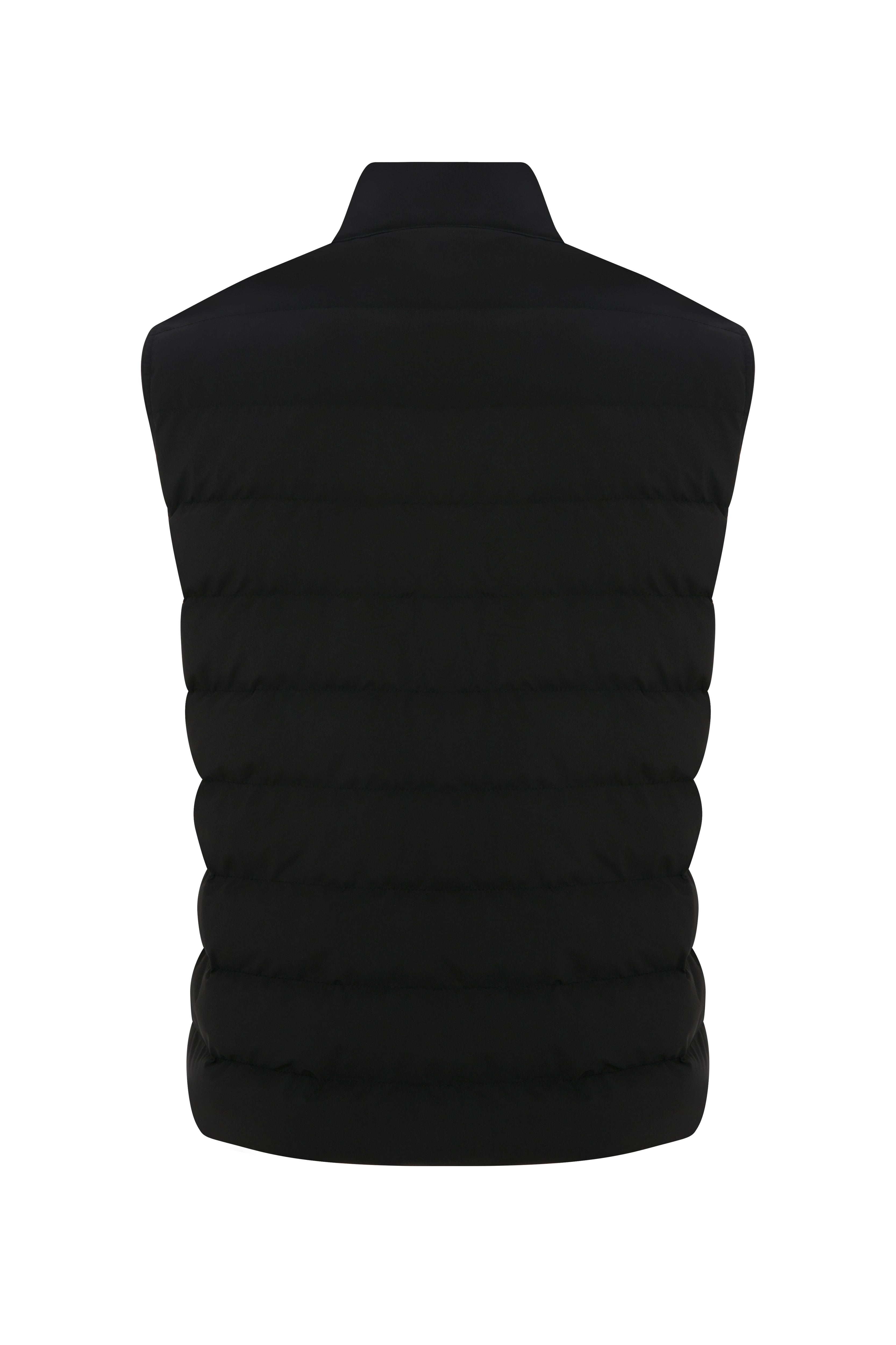 Slim fit kalıbı, dik yaka tasarımı, fermuarlı yapısı, puffer dokusu ve fermuarlı yan cepleriyle işlevsel ve modern bir yelektir.