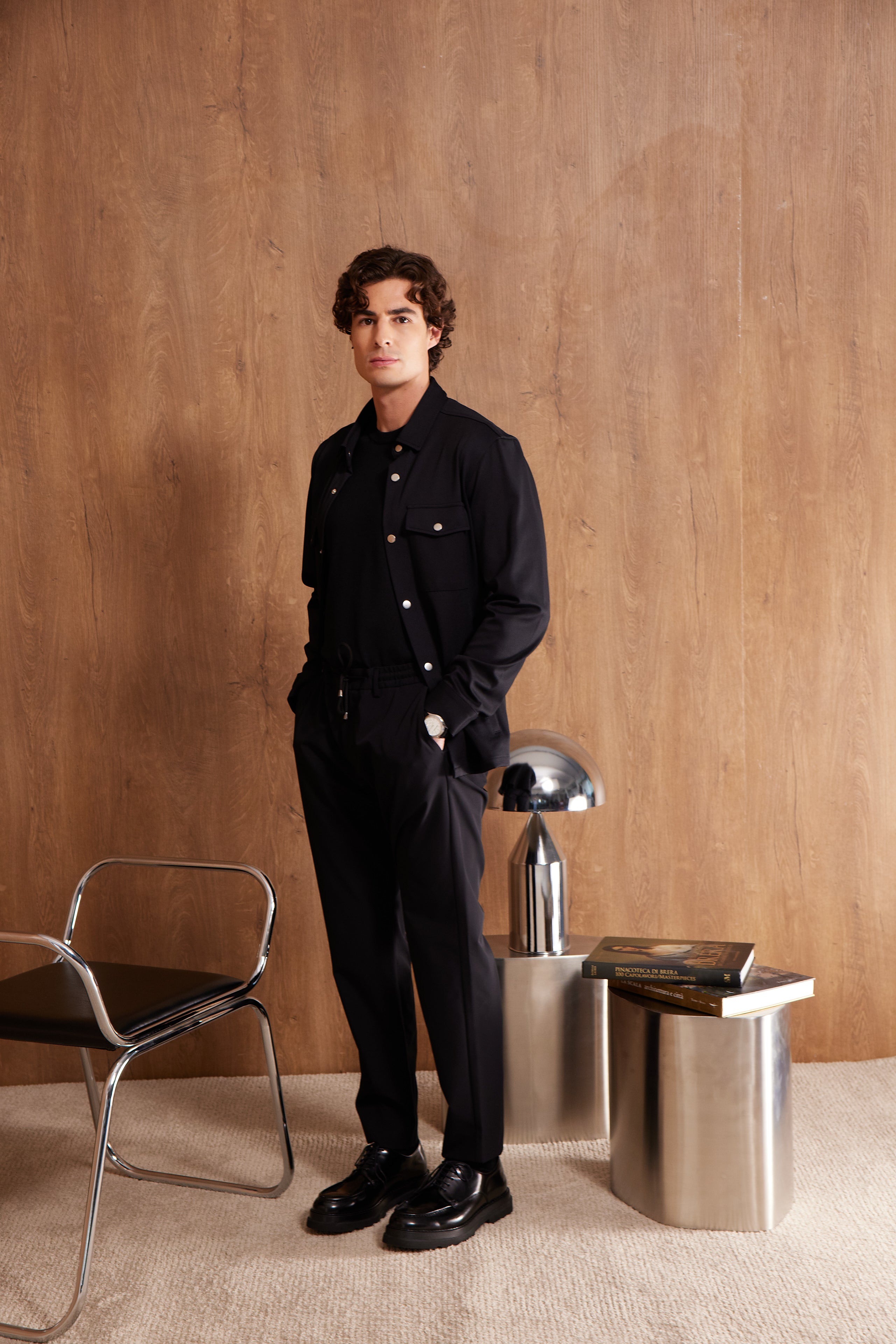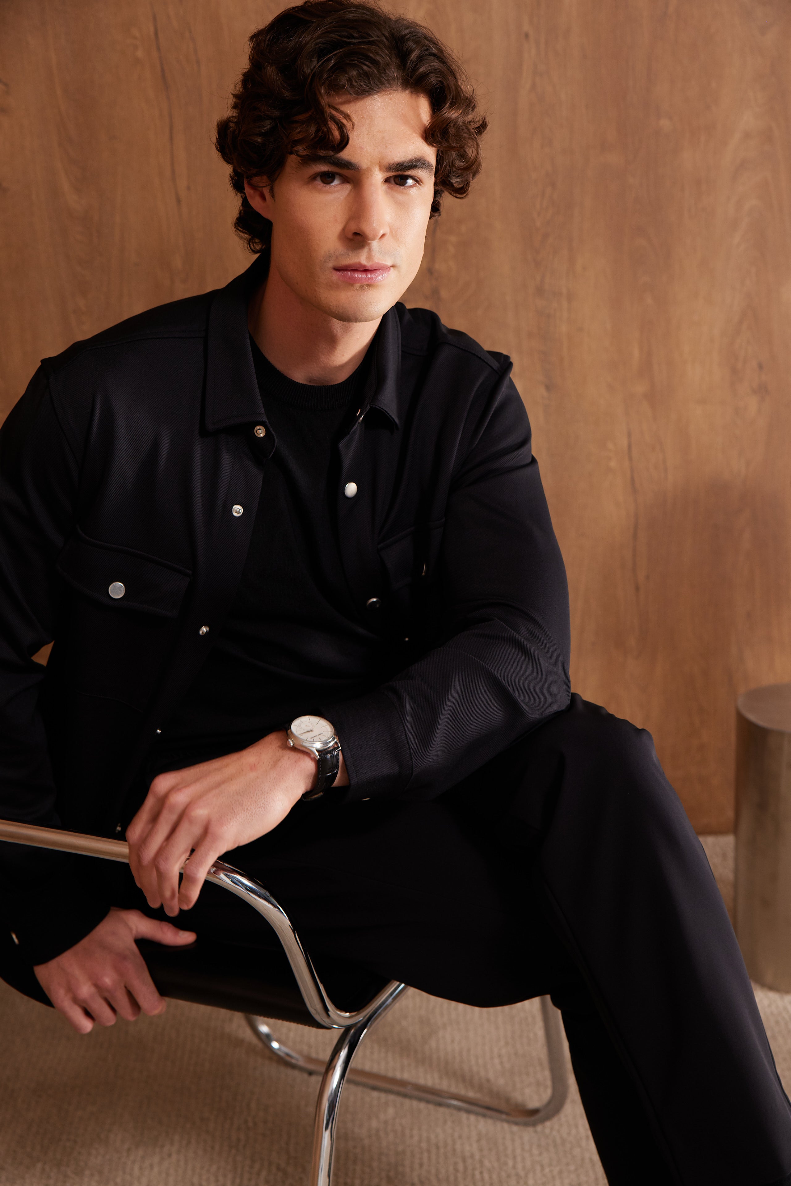 Comfort Fit; Gömlek Yaka,kendinden Diyagonel Desenli Dış Gömlek; Uzun Kol; Yan Cepli.